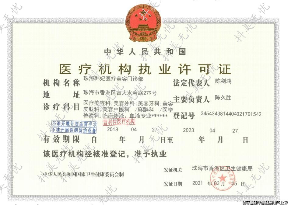機(jī)構(gòu)名稱:珠海韓妃醫(yī)療美容門診部