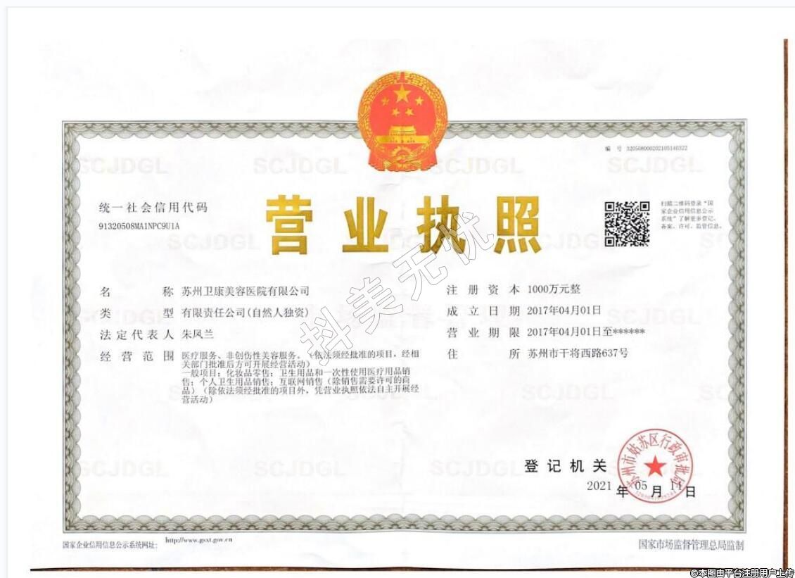 醫(yī)療機(jī)構(gòu)名稱:蘇州衛(wèi)康美容醫(yī)院