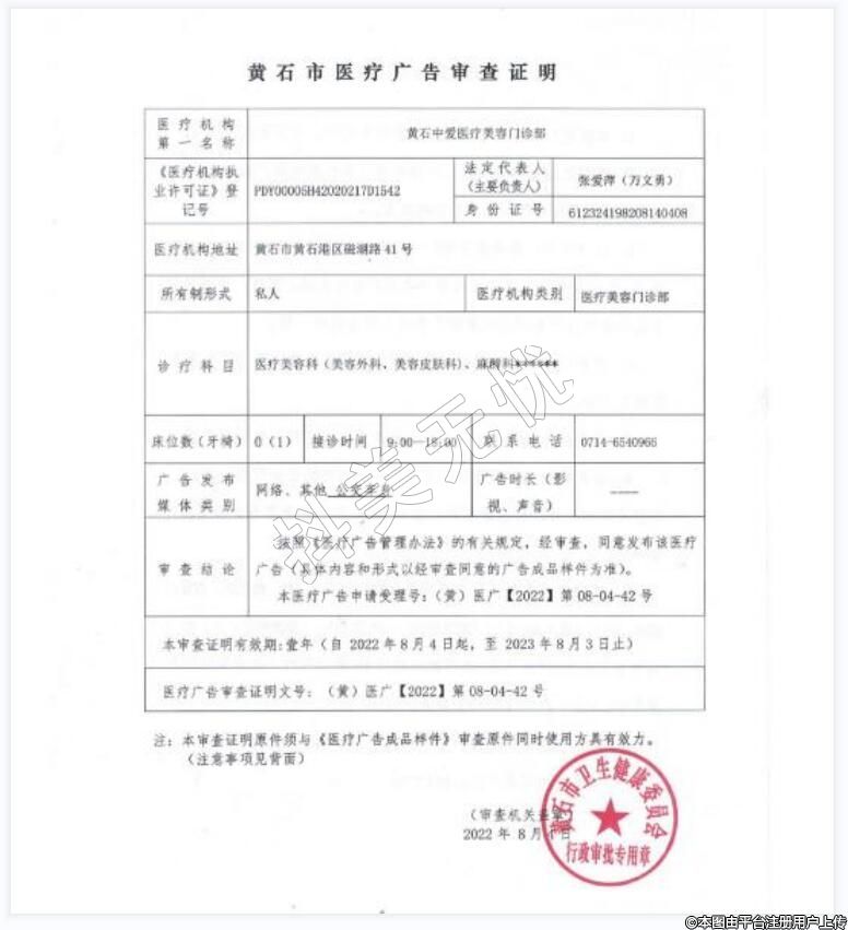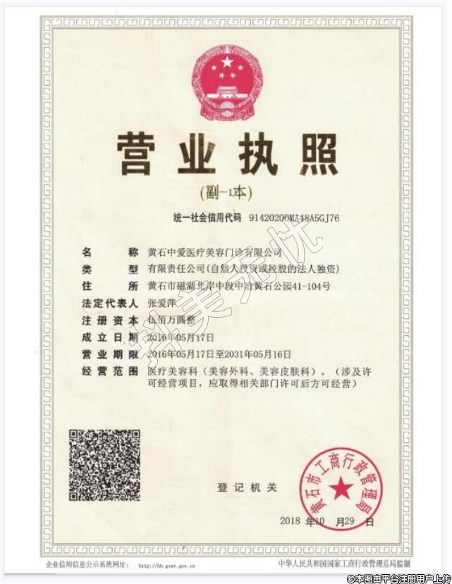 機(jī)構(gòu)名稱(chēng):黃石中愛(ài)醫(yī)療美容門(mén)診部