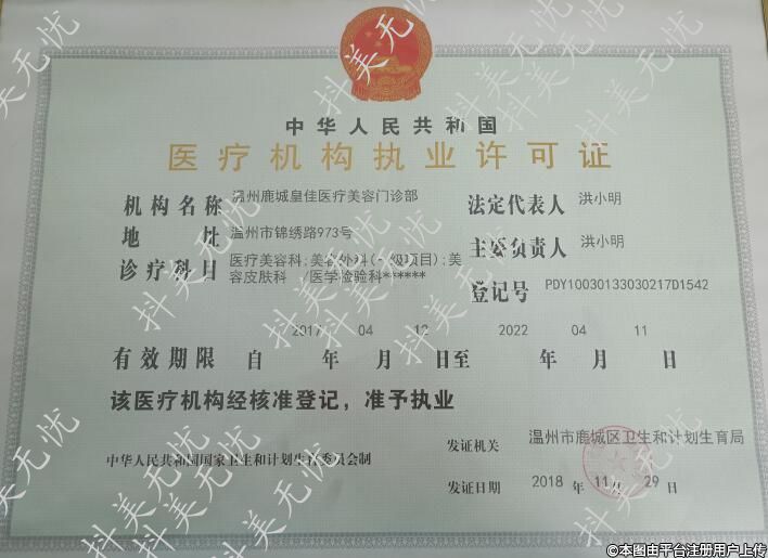 機(jī)構(gòu)名稱:溫州鹿城皇佳醫(yī)療美容門診部