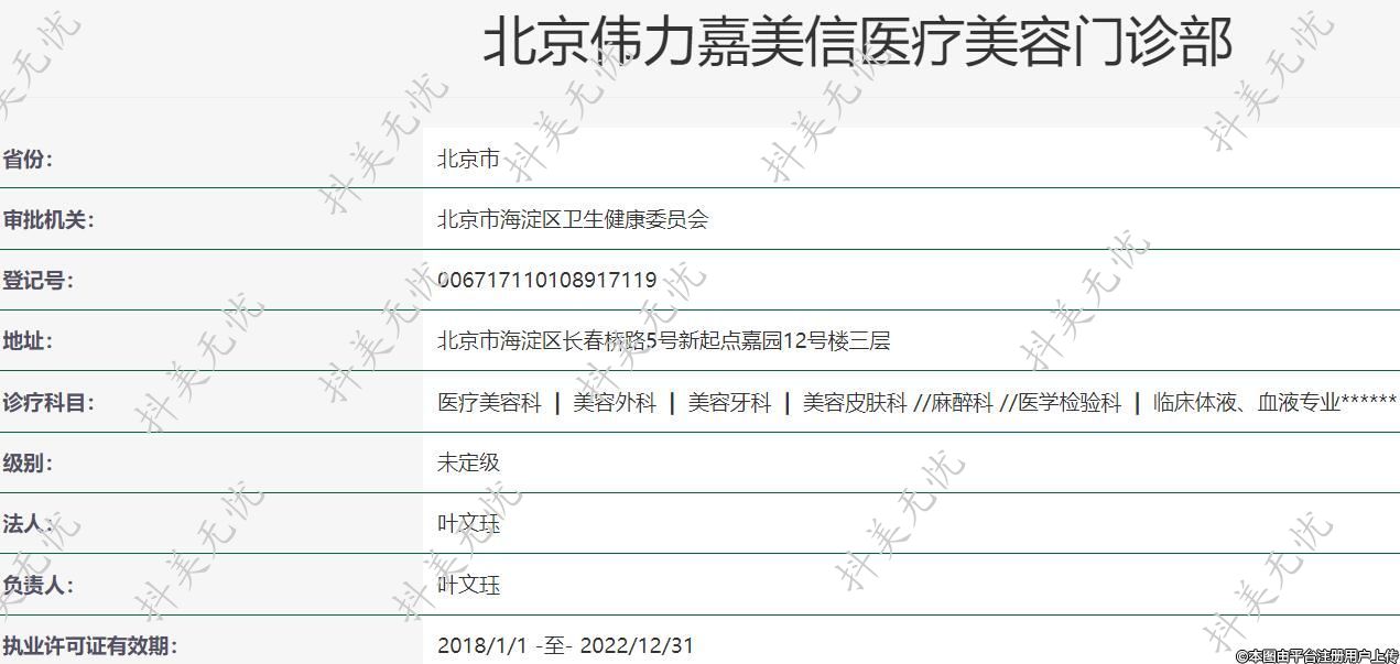 機(jī)構(gòu)名稱:北京偉力嘉美信醫(yī)療美容門診部