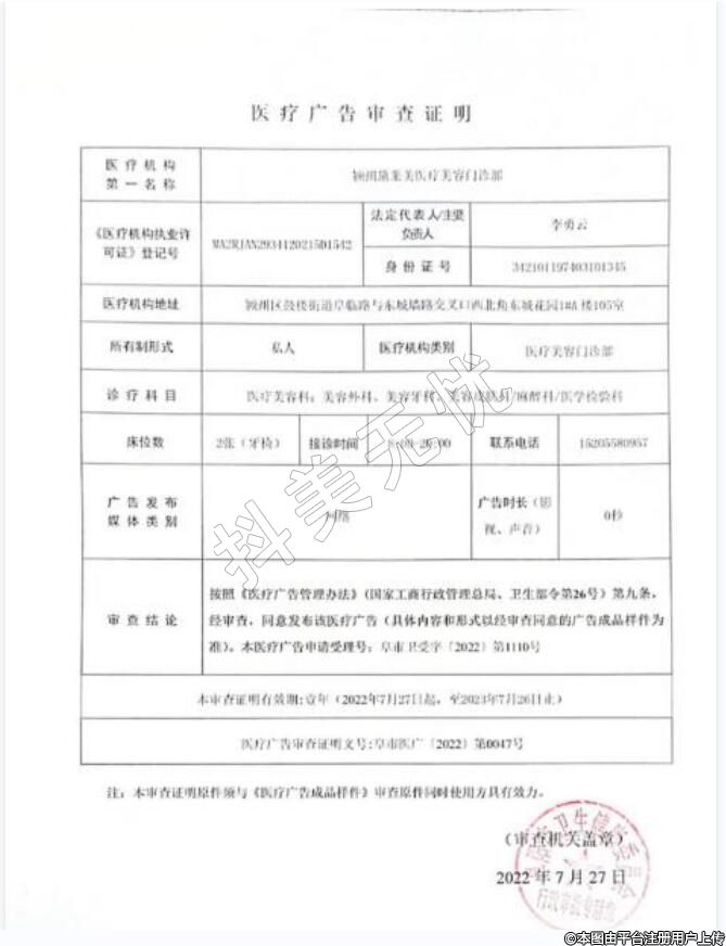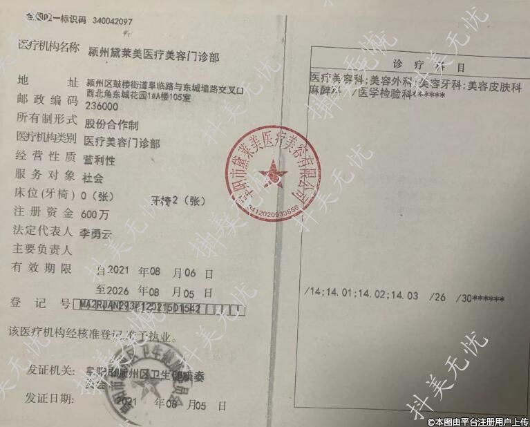 醫(yī)療機(jī)構(gòu)名稱:潁州黛萊美醫(yī)療美容門診部