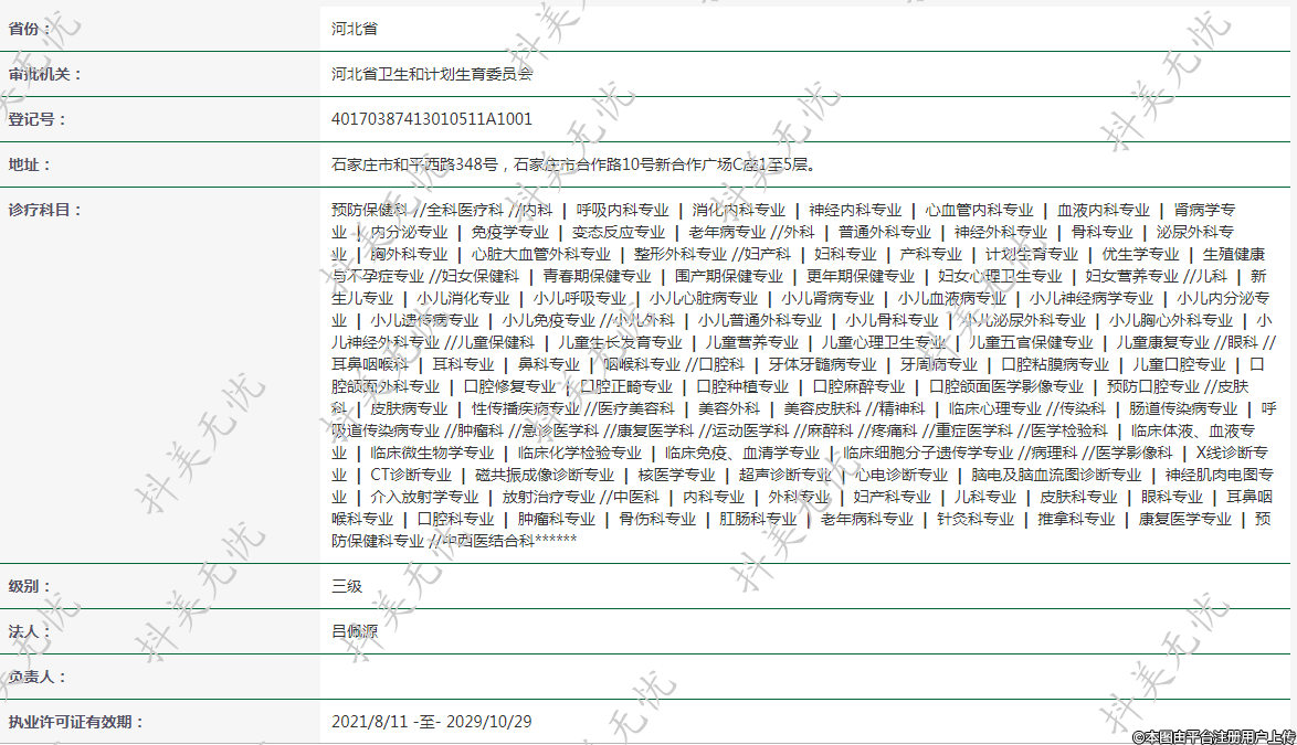 執(zhí)業(yè)許可證有效期:2021/8/11 -至- 2029/10/29