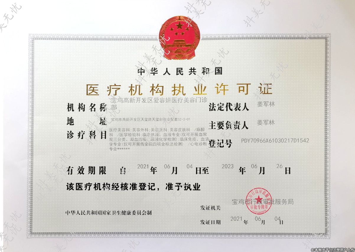 機(jī)構(gòu)名稱:寶雞高新開發(fā)區(qū)愛容妍醫(yī)療美容門診部