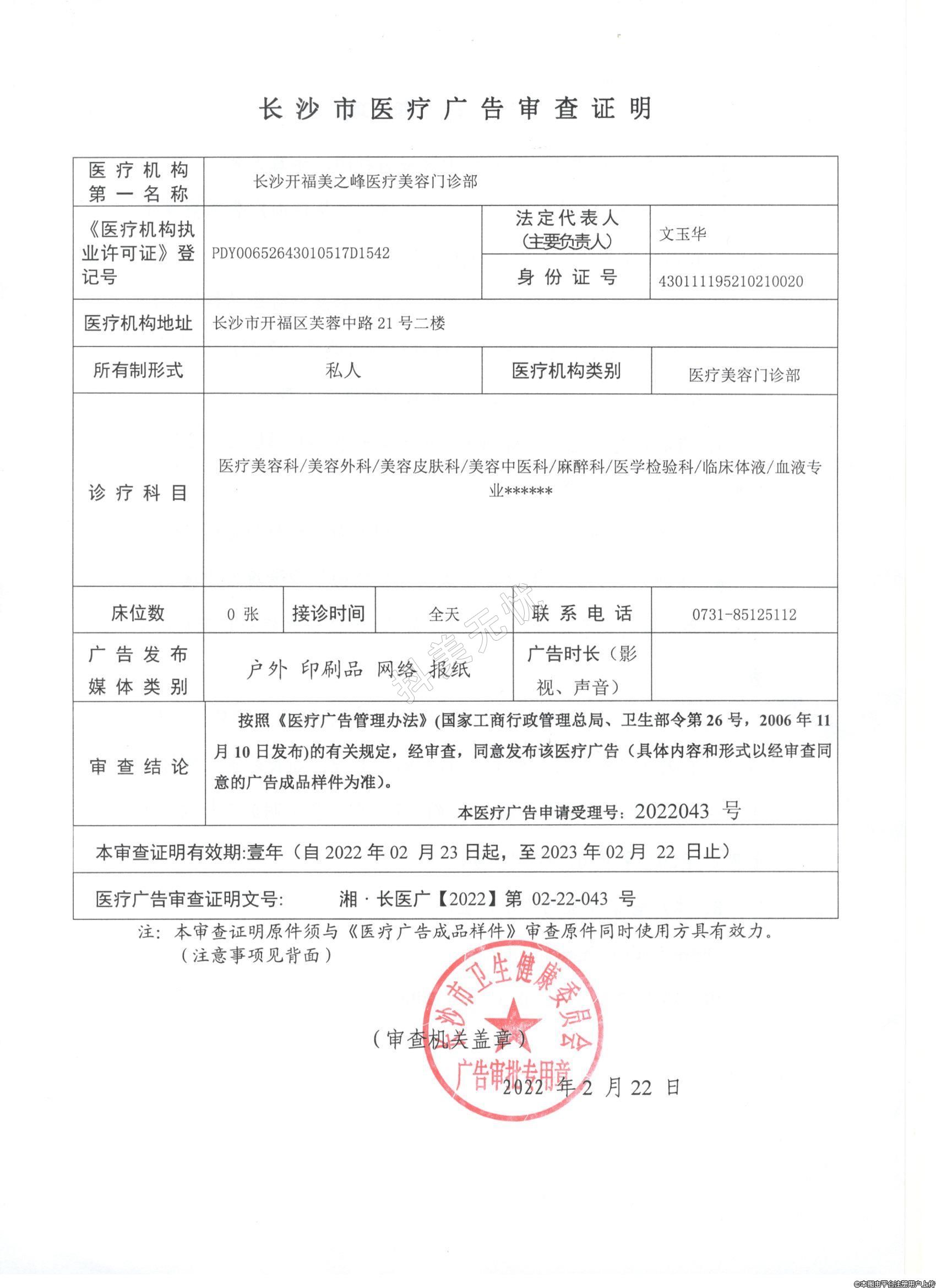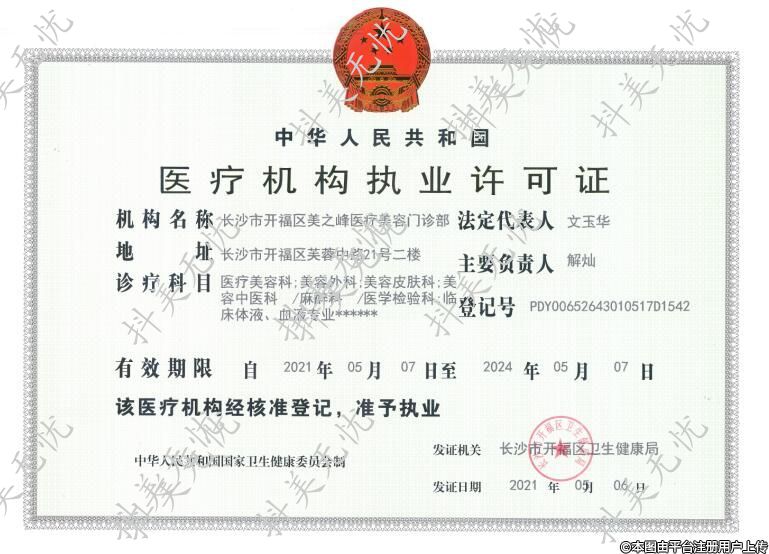 機(jī)構(gòu)名稱:長(zhǎng)沙市開福區(qū)美之峰醫(yī)療美容門診部