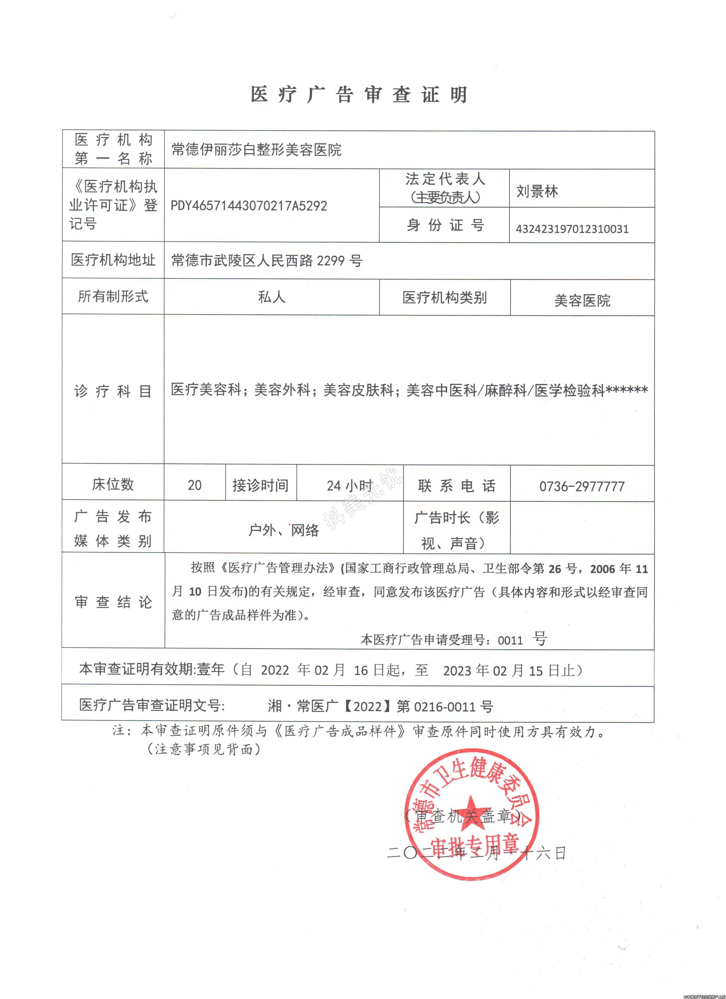 機(jī)構(gòu)名稱(chēng):常德伊麗莎白整形美容醫(yī)院