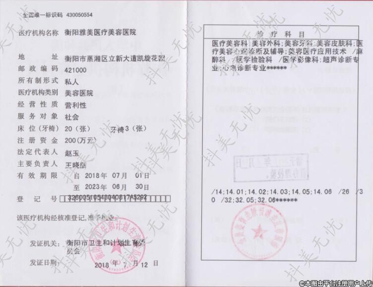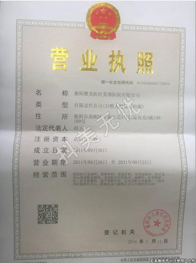 醫(yī)療機(jī)構(gòu)名稱:衡陽雅美醫(yī)療美容醫(yī)院