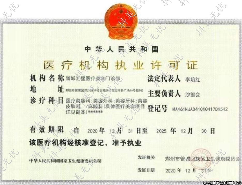 機(jī)構(gòu)名稱:管城匯星醫(yī)療美容門診部