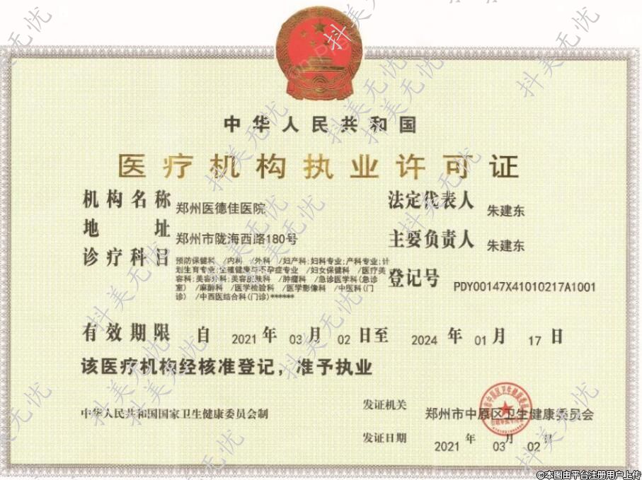發(fā)證機關:鄭州市中原區(qū)衛(wèi)生健康委員會