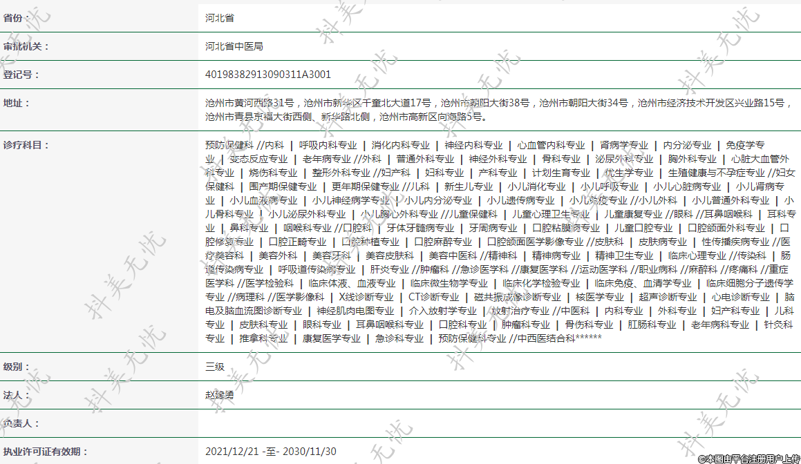 執(zhí)業(yè)許可證有效期:2021/12/21 -至- 2030/11/30