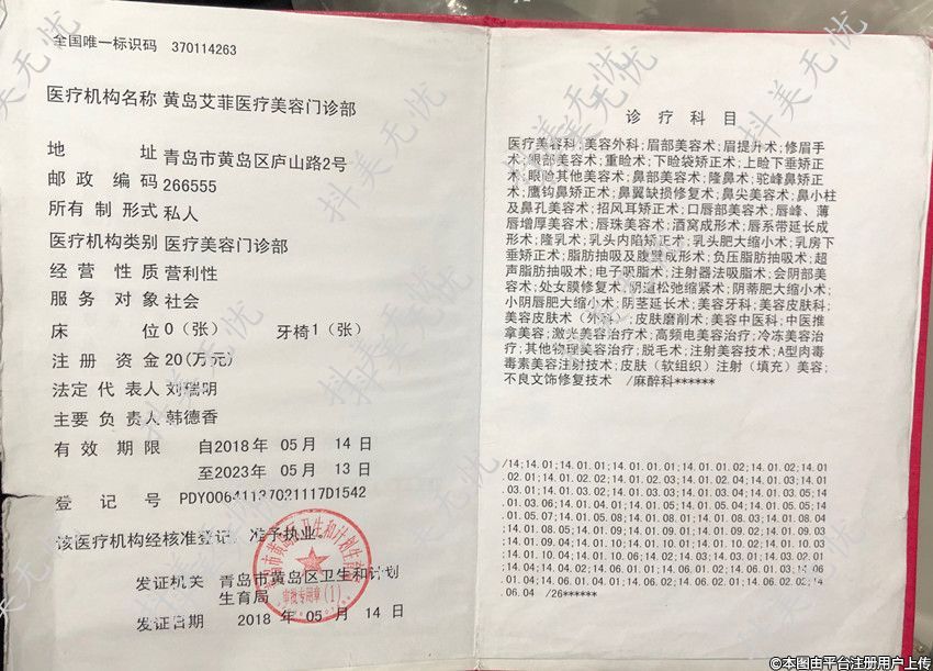 機(jī)構(gòu)名稱(chēng):黃島艾菲醫(yī)療美容門(mén)診部