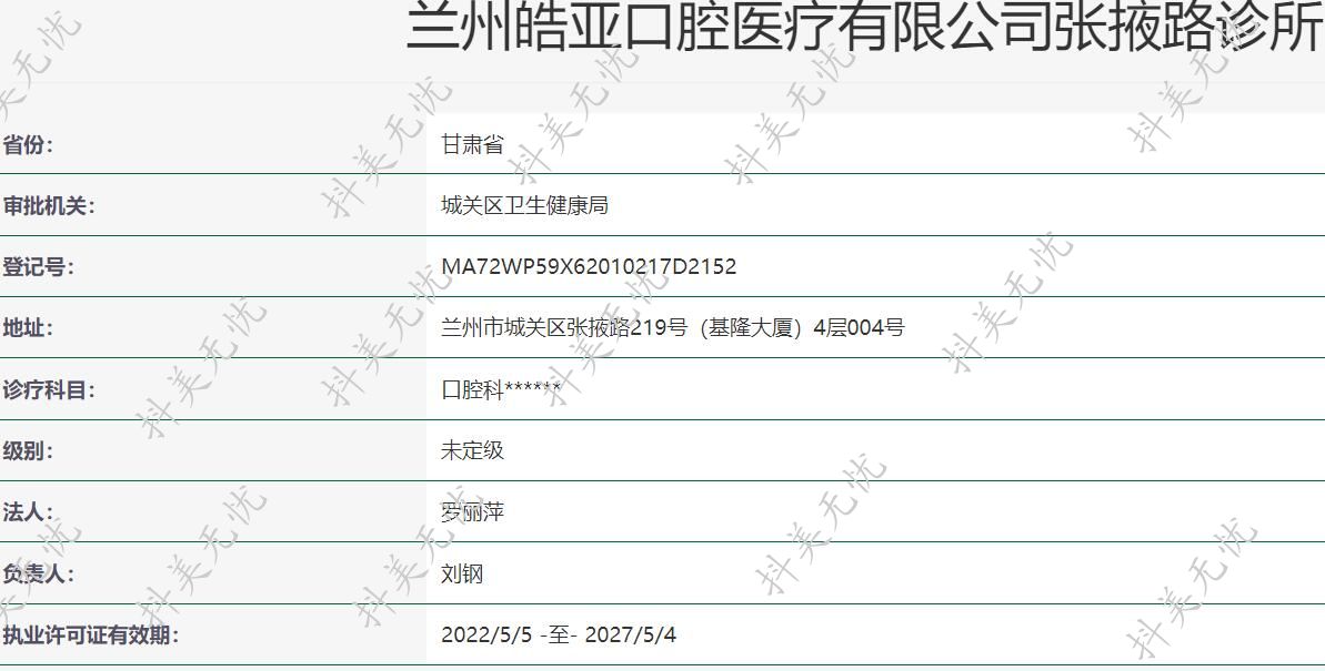 蘭州皓亞口腔醫(yī)療有限公司張掖路診所