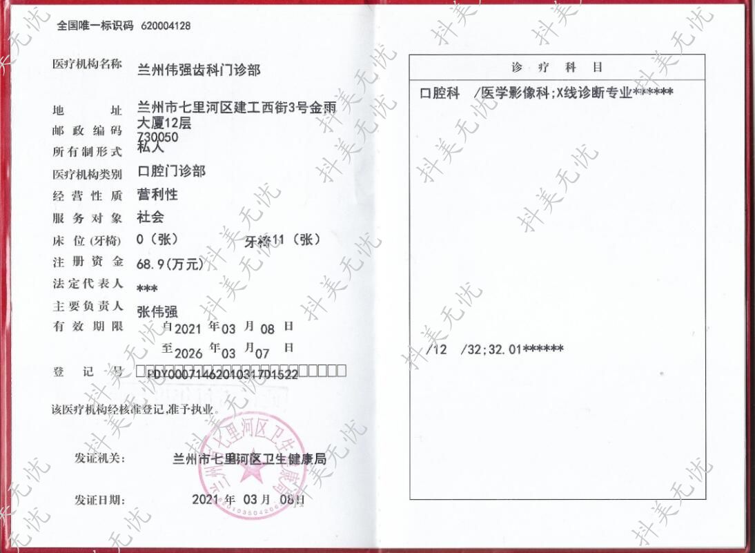 執(zhí)業(yè)許可證有效期:2021/3/8 -至- 2026/3/7