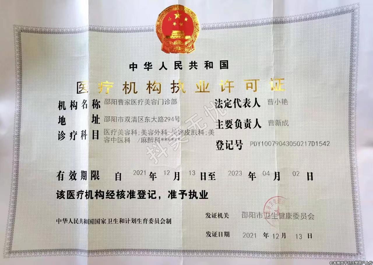醫(yī)療機(jī)構(gòu)名稱:邵陽(yáng)曹家醫(yī)療美容門(mén)診部