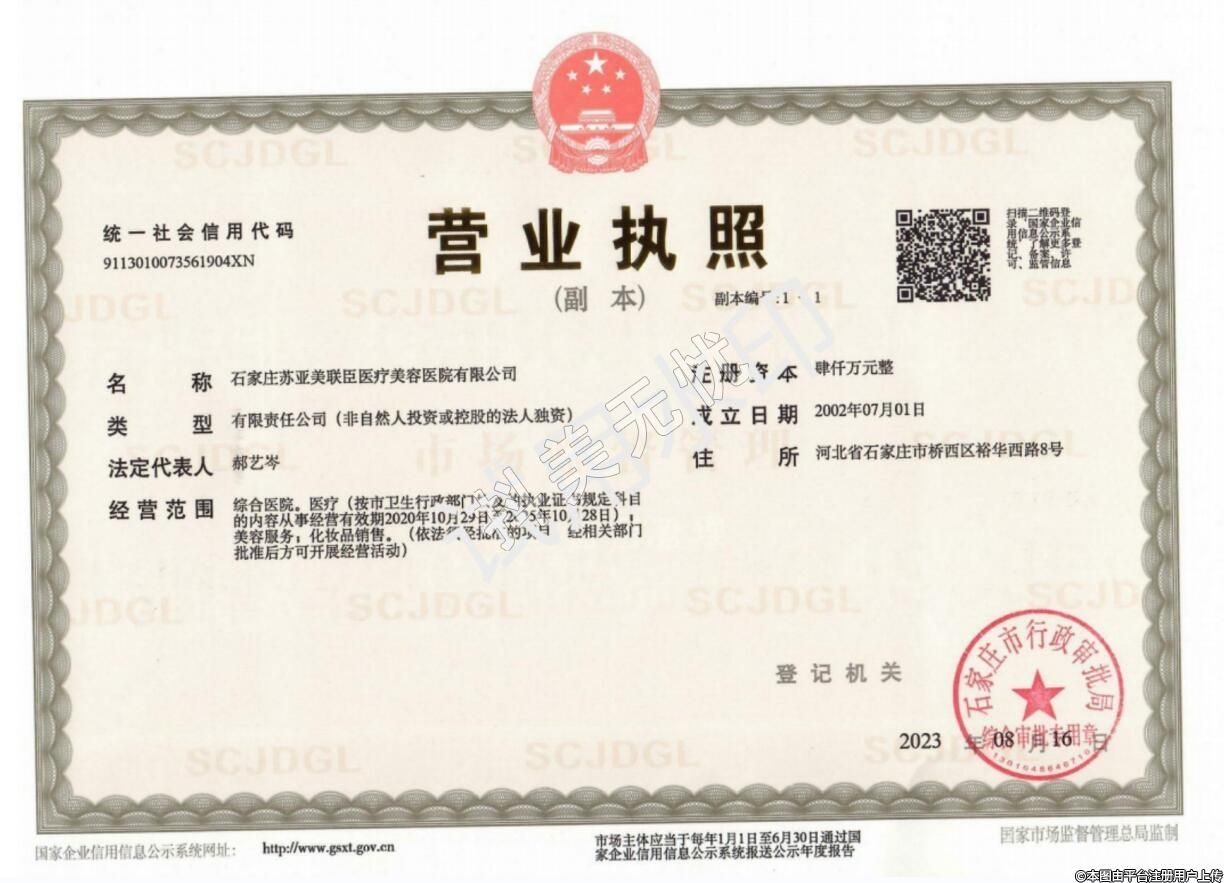 機(jī)構(gòu)名稱:石家莊蘇亞美聯(lián)臣醫(yī)療美容醫(yī)院