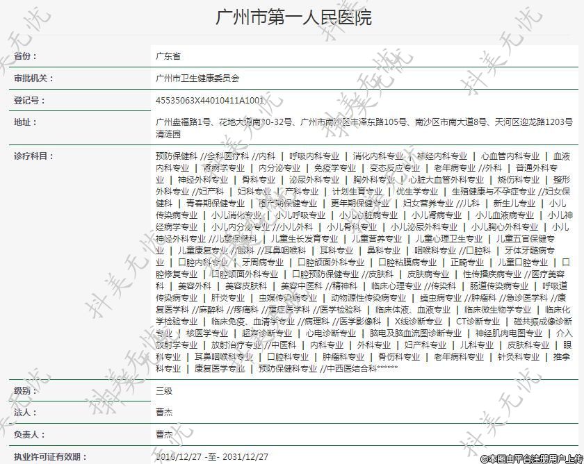機構(gòu)名稱:廣州市第一人民醫(yī)院