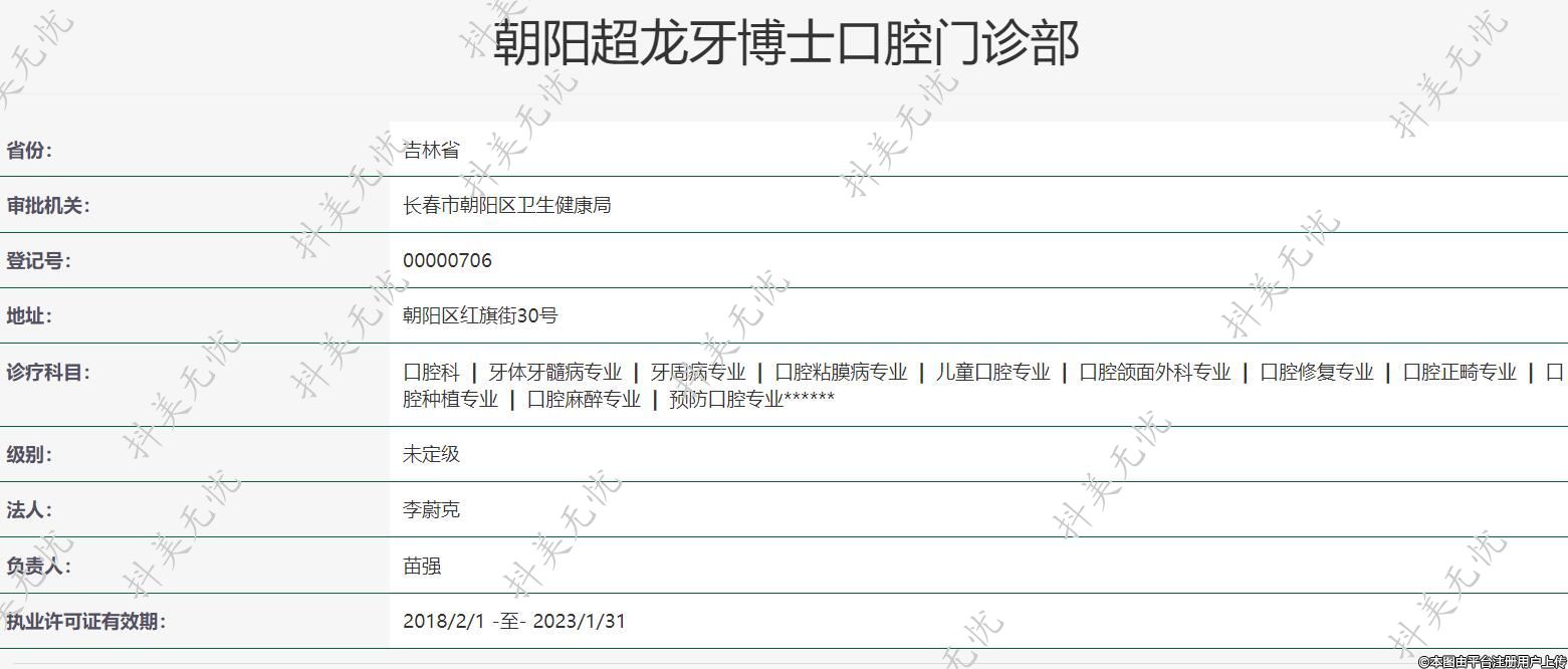 機(jī)構(gòu)名稱:朝陽超龍牙博士口腔門診部