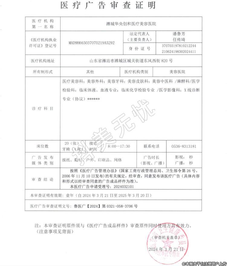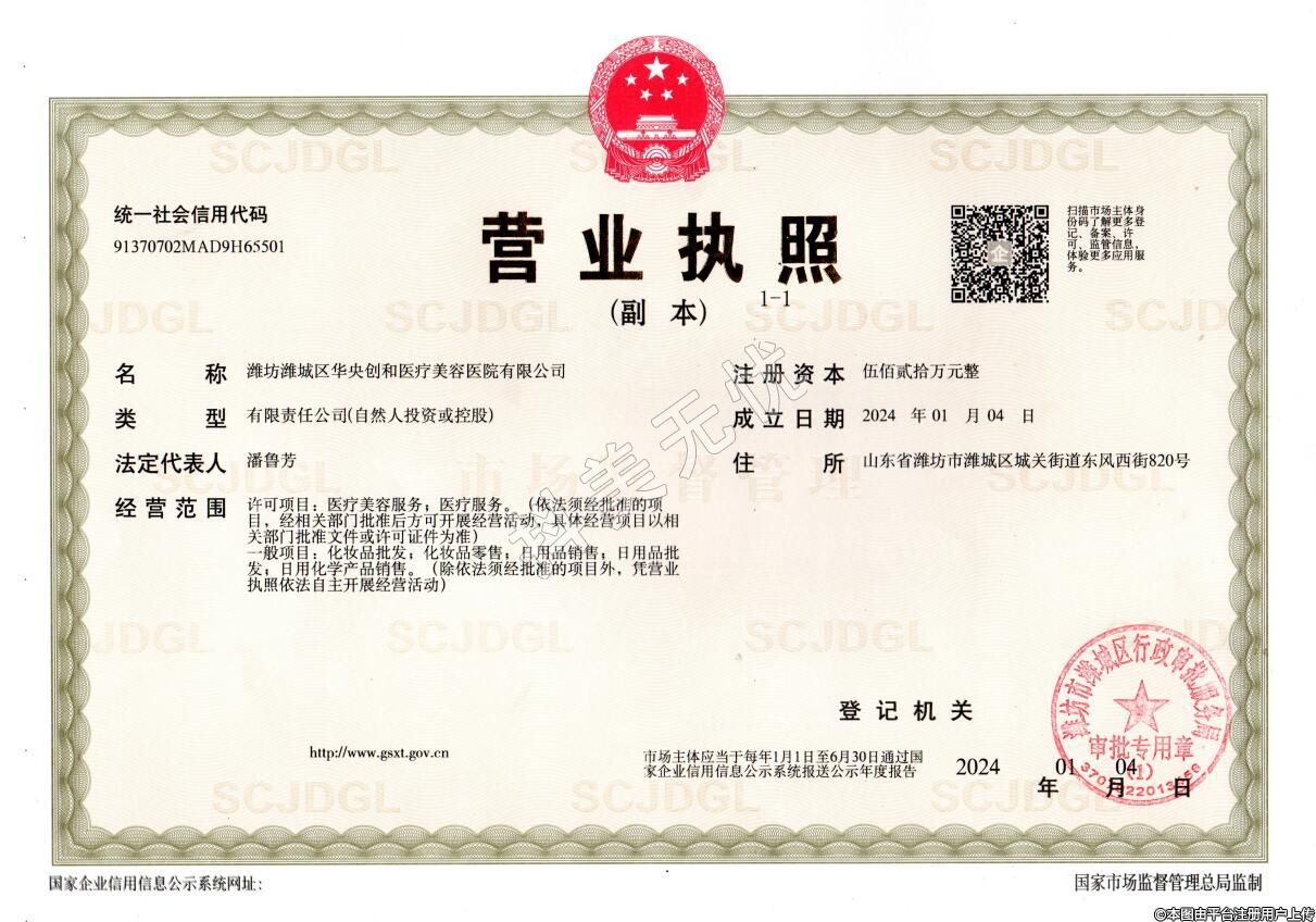 機構(gòu)名稱:濰城華央創(chuàng)和醫(yī)療美容醫(yī)院