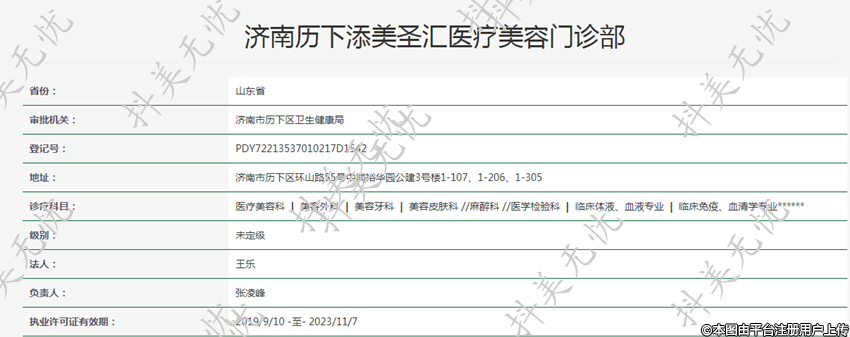 機(jī)構(gòu)名稱:濟(jì)南歷下添美圣匯醫(yī)療美容門診部