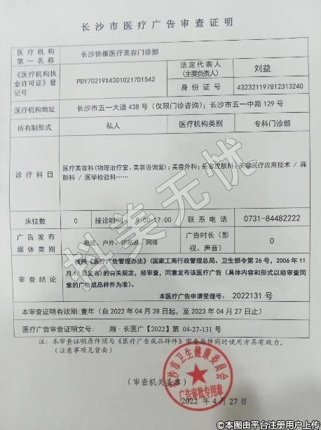 機構(gòu)名稱:長沙協(xié)雅醫(yī)療美容門診部