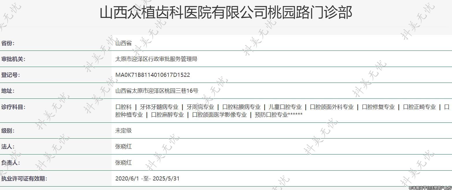 山西眾植齒科醫(yī)院有限公司桃園路門診部