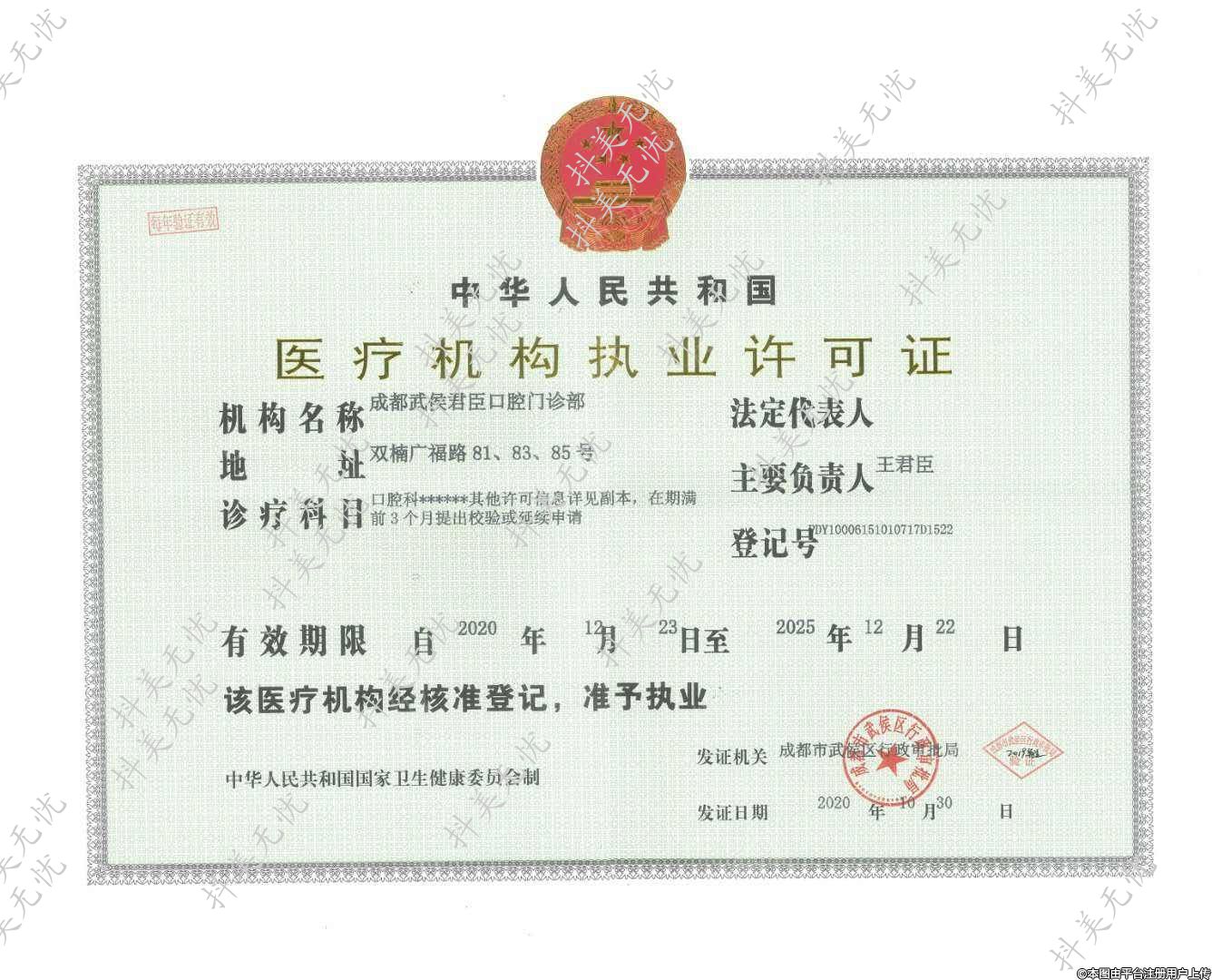 機構(gòu)名稱:成都武侯君臣口腔門診部