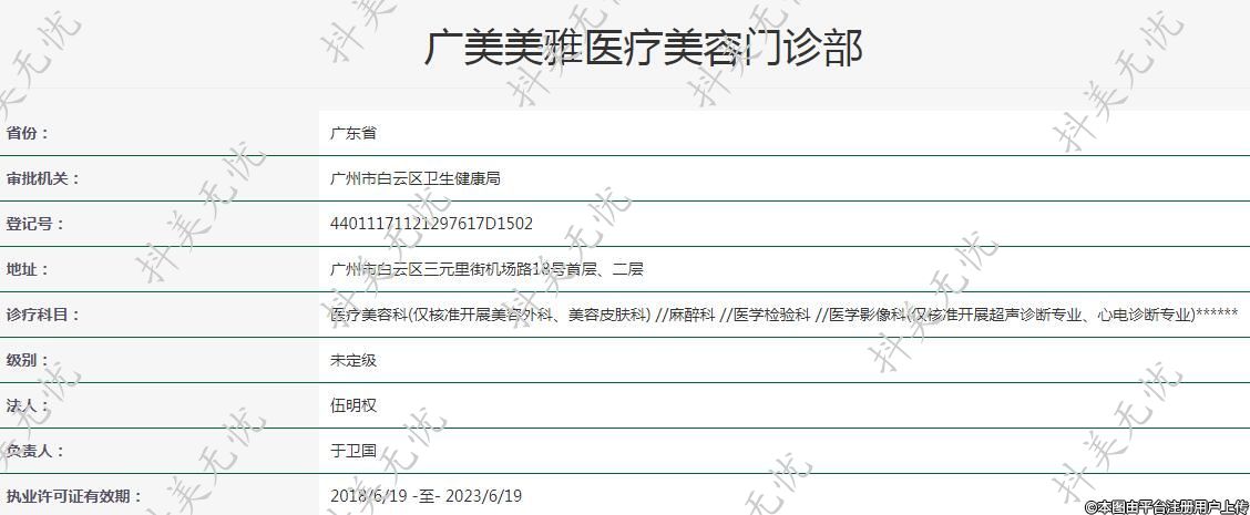 診療科目:醫(yī)療美容科(僅核準(zhǔn)開(kāi)展美容外科、美容皮膚科) //麻醉科 //醫(yī)學(xué)檢驗(yàn)科 //醫(yī)學(xué)影像科(僅核準(zhǔn)開(kāi)展超聲診斷專業(yè)、心電診斷專業(yè))******