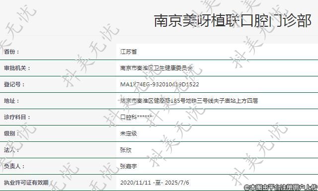 南京美呀植聯(lián)口腔成立于2019-04-09,位于江蘇省南京市秦淮區(qū)健康路185號地鐵三號線夫子廟站上方四層??剖曳秶?口腔科。
