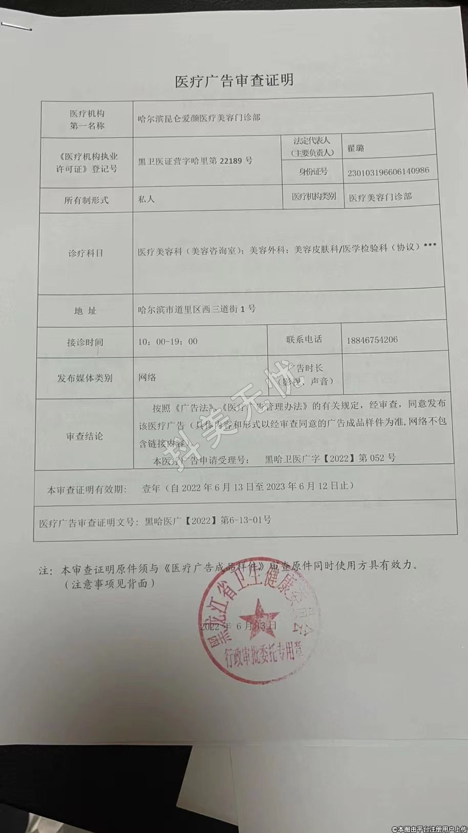 發(fā)證機(jī)關(guān):哈爾濱市道里區(qū)衛(wèi)生健康局