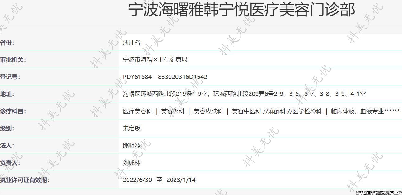 寧波海曙雅韓寧悅醫(yī)療美容門(mén)診部