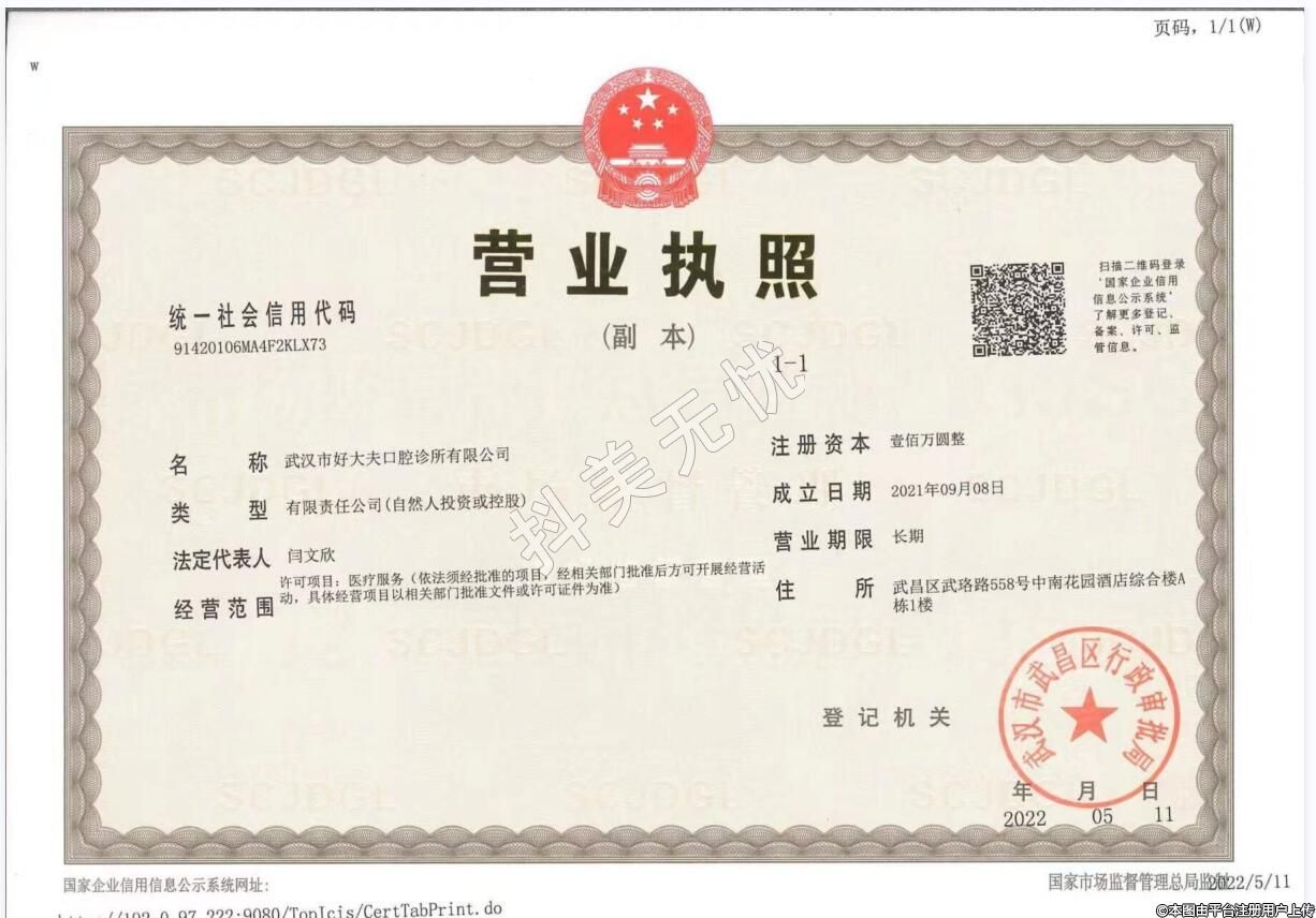 機構(gòu)名稱:武漢市好大夫口腔診所(備案)