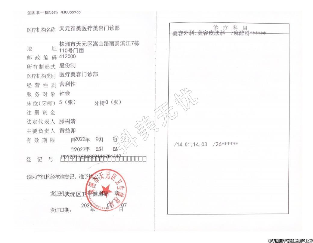 機構(gòu)名稱:天元雅美醫(yī)療美容門診部