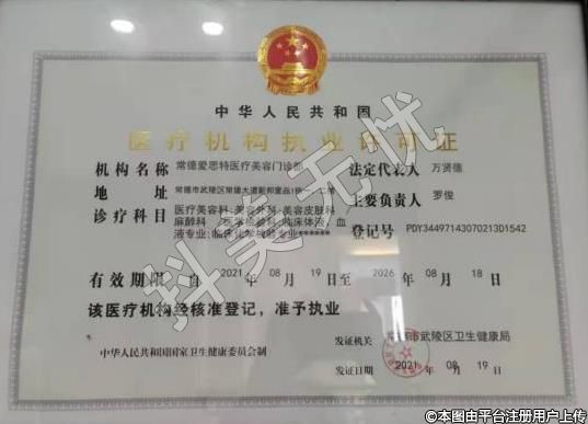 發(fā)證機關(guān):常德市武陵區(qū)衛(wèi)生健康局