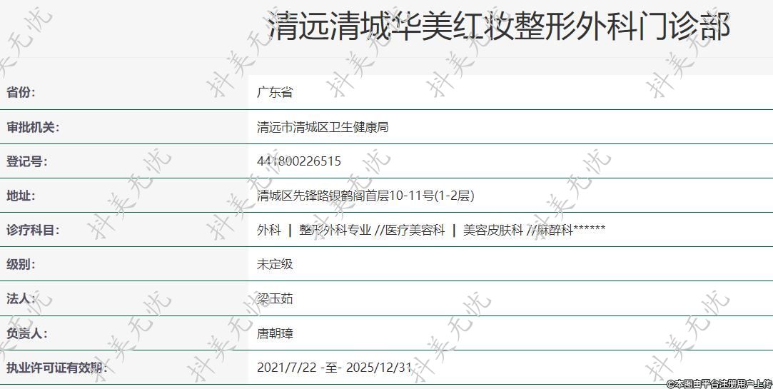 清遠清城華美紅妝整形外科門診部