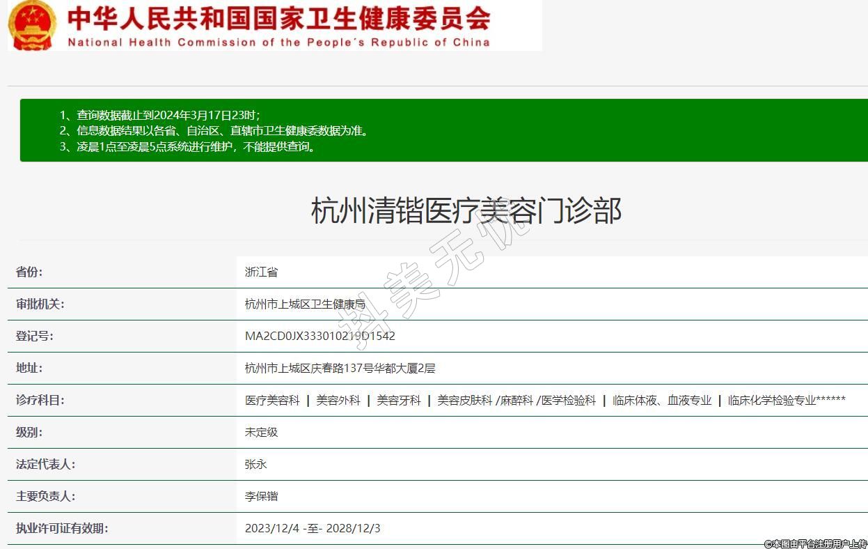 杭州清鍇醫(yī)療美容是經(jīng)過杭州市上城區(qū)衛(wèi)生健康局審批的正規(guī)醫(yī)美整形機(jī)構(gòu),地址位于杭州市上城區(qū)慶春路137號華都大廈2層,交通便利!
