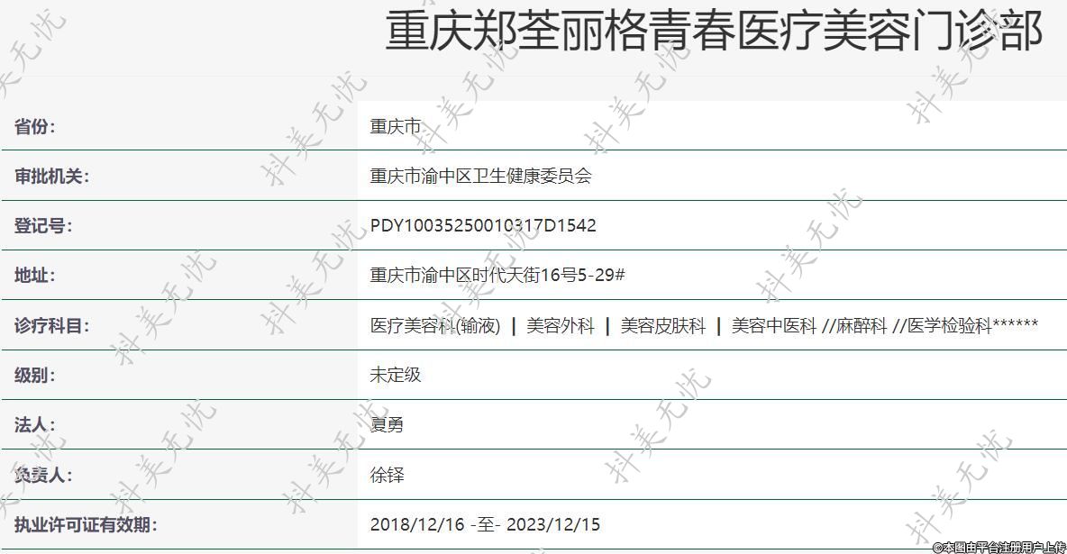 重慶鄭荃麗格青春醫(yī)療美容門診部