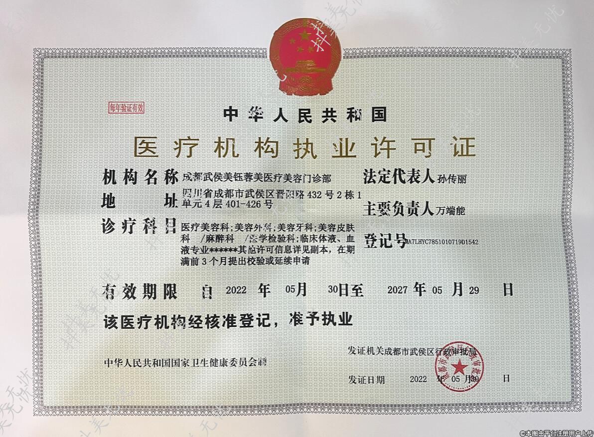 機構名稱:成都武侯美鈺蓉美醫(yī)療美容門診部