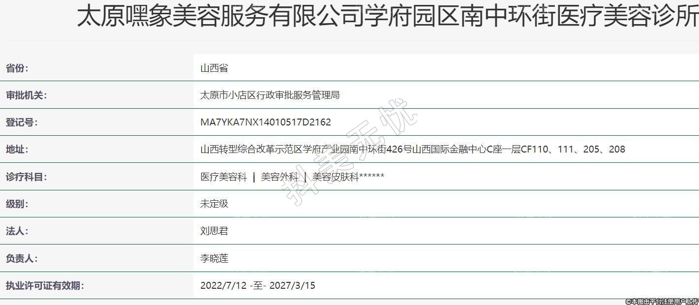 太原嘿象美容服務(wù)有限公司學(xué)府園區(qū)南中環(huán)街醫(yī)療美容診所