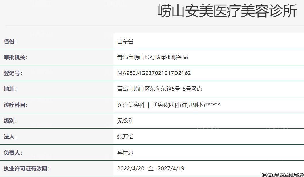 青島安美醫(yī)療美容,成立于2021-10-14,地址為山東省青島市l(wèi)嶗山區(qū)東海東路5號5號網(wǎng)點,診療科目:醫(yī)療美容科 | 美容皮膚科******
