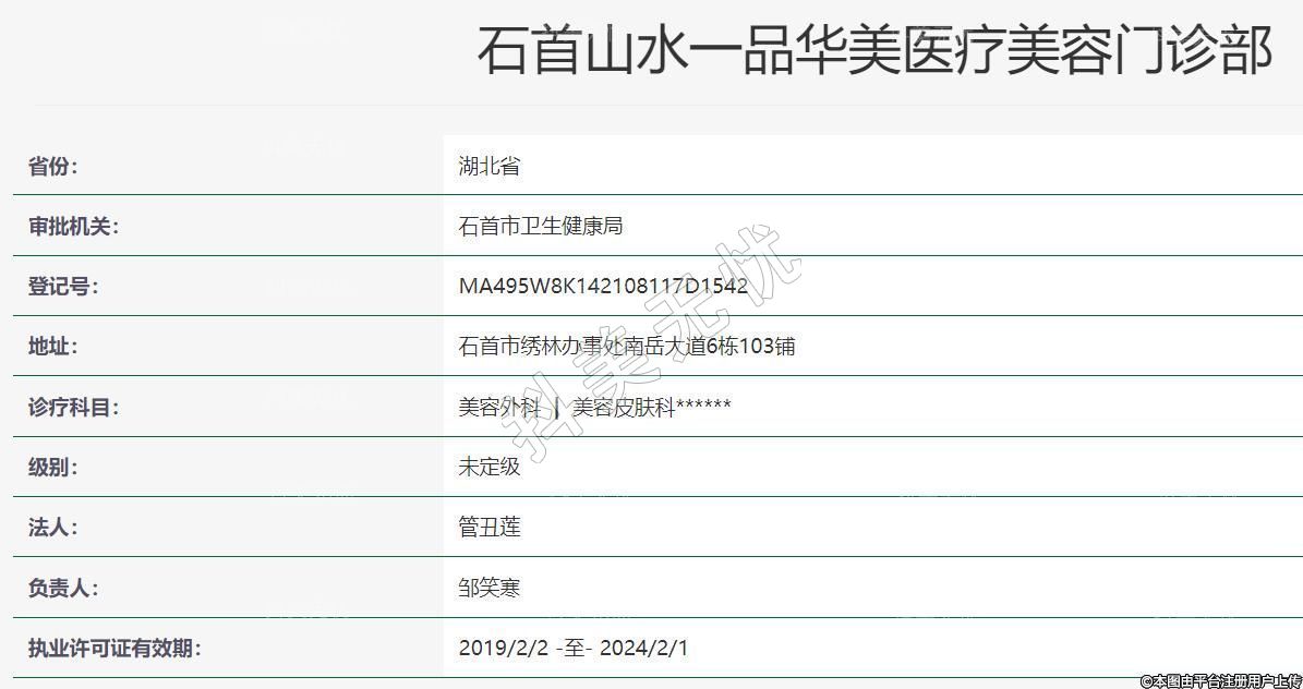 石首山水一品華美醫(yī)療美容地址:石首市繡林辦事處南岳大道6棟103鋪,診療科目:美容外科 | 美容皮膚科******