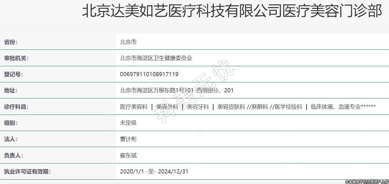 北京達美如藝醫(yī)療科技有限公司醫(yī)療美容門診部