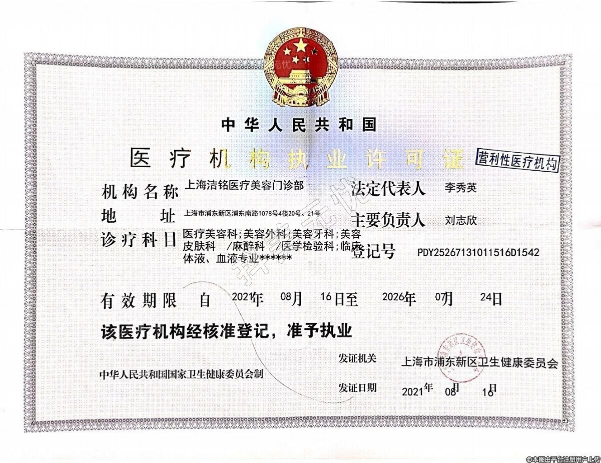 機(jī)構(gòu)名稱(chēng):上海潔銘醫(yī)療美容門(mén)診部