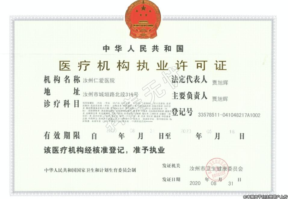 發(fā)證機關:汝州市衛(wèi)生健康委員會