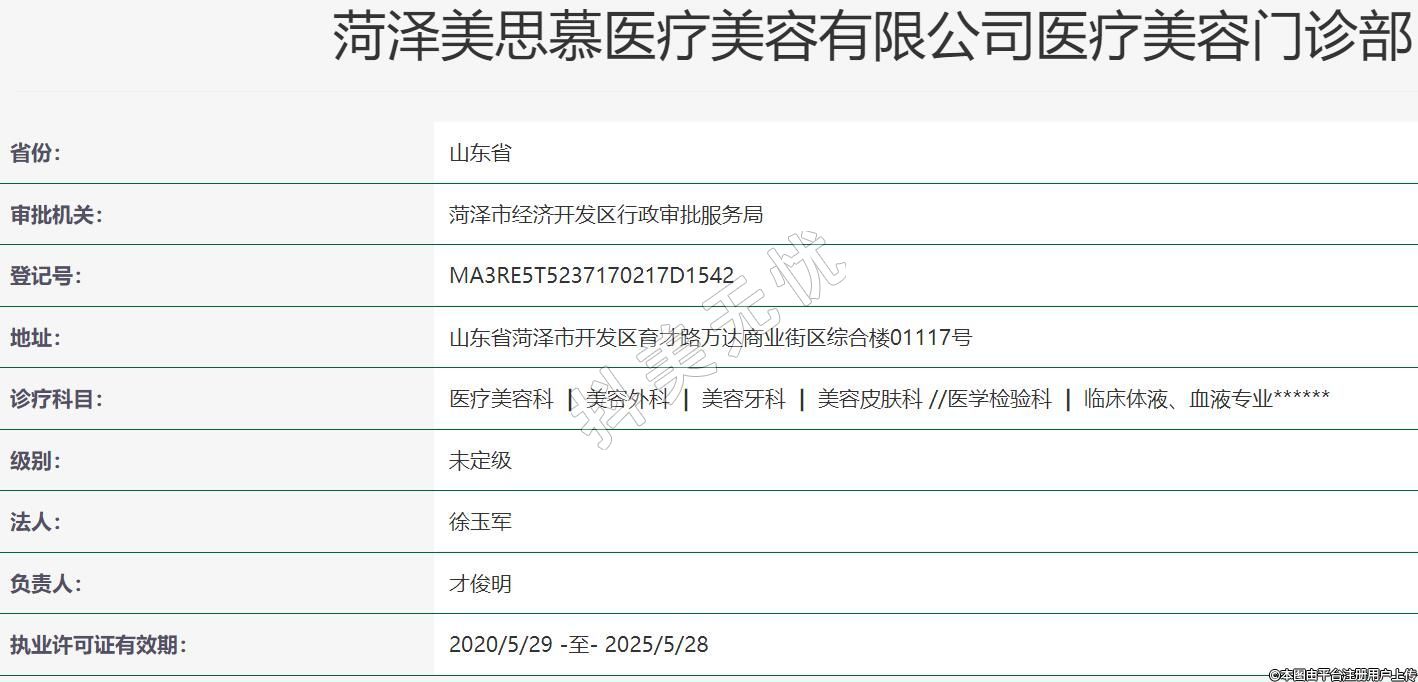 菏澤美思慕醫(yī)療美容有限公司醫(yī)療美容門診部