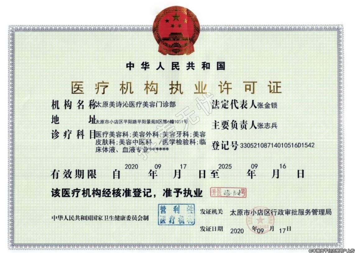 機構名稱:太原美詩沁醫(yī)療美容門診部