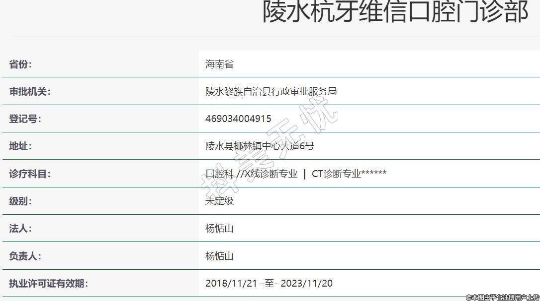 陵水杭牙維信口腔門診,成立于2017年3月23日,位于海南省陵水縣椰林鎮(zhèn)中心大道6號,經營范圍:口腔科;牙體牙髓病專業(yè)、牙周病專業(yè)、口腔粘膜病專業(yè)、兒童口腔專業(yè)、口腔修復專業(yè)、口腔正畸專業(yè)、口腔種植專業(yè)、口腔頜面醫(yī)學影像專業(yè)、預防口腔專業(yè)。