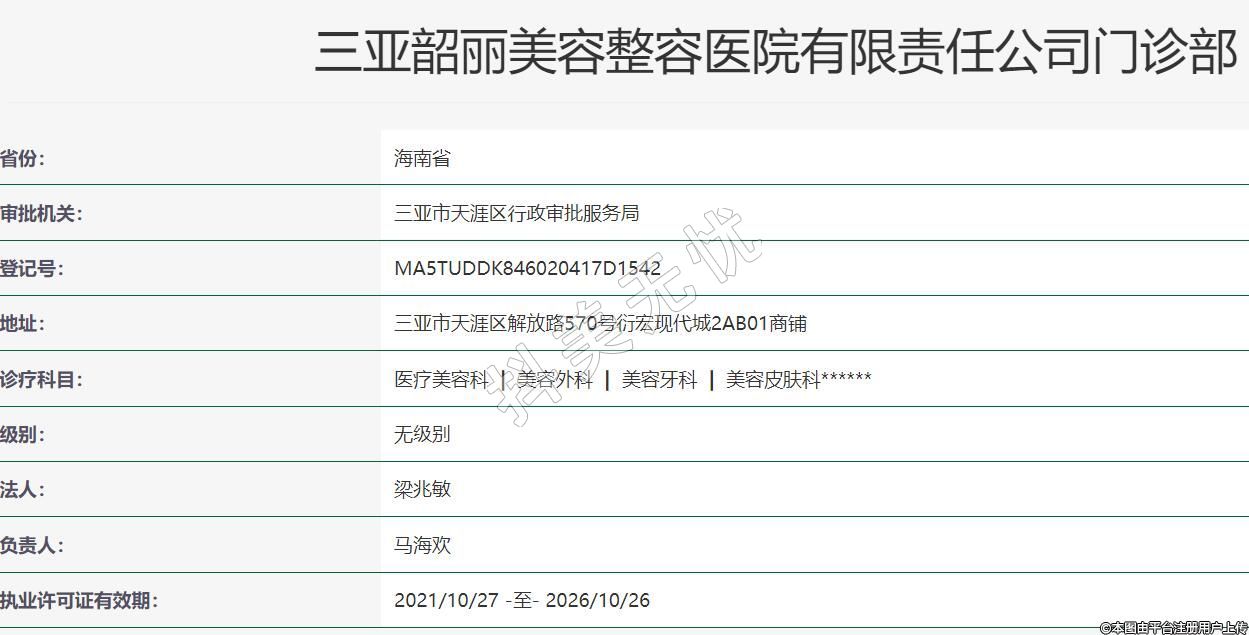 三亞韶麗美容整容醫(yī)院有限責(zé)任公司門診部