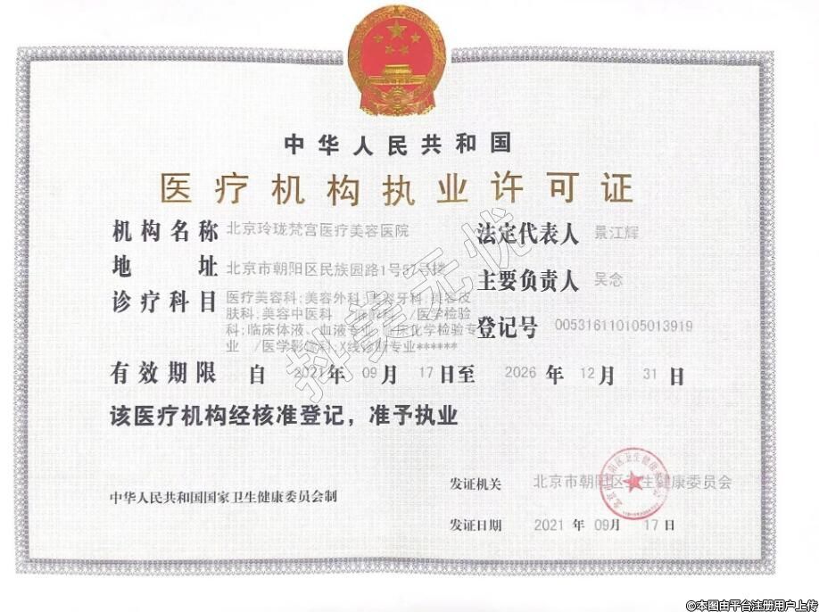 北京玲瓏梵宮醫(yī)療美容2016-01-07成立,診療科目:醫(yī)療美容科 | 美容外科 | 美容牙科 | 美容皮膚科 | 美容中醫(yī)科 //麻醉科 //醫(yī)學(xué)檢驗科 | 臨床體液、血液專業(yè) | 臨床化學(xué)檢驗專業(yè) //醫(yī)學(xué)影像科 | X線診斷專業(yè)******