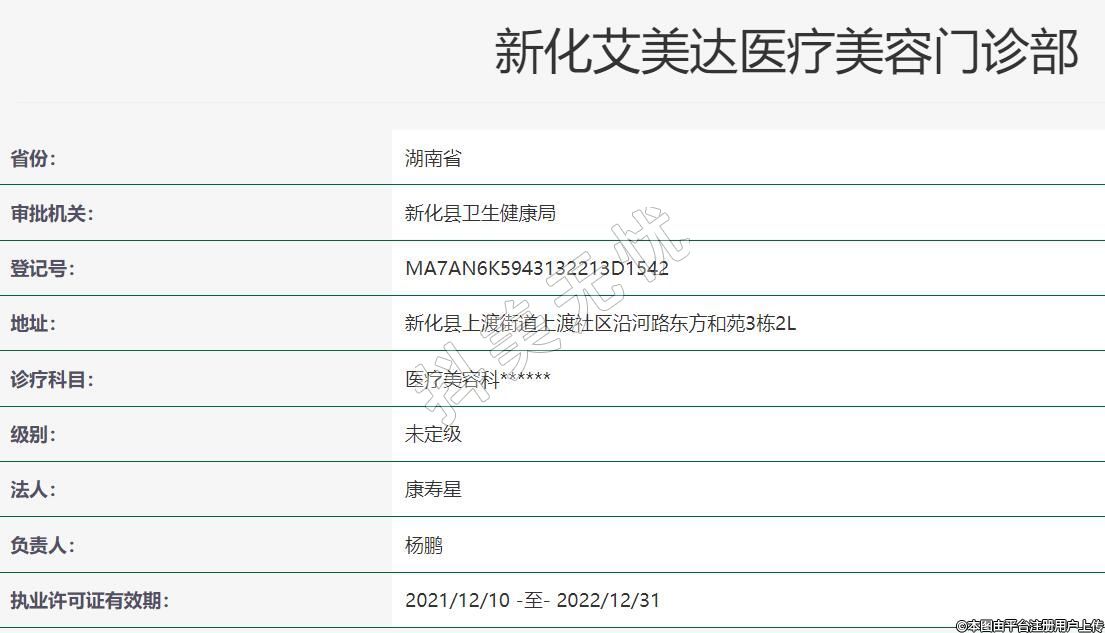 新化艾美達醫(yī)療美容2021年09月28日成立,地址:新化縣上渡街道上渡社區(qū)沿河路東方和苑3棟2L,診療科目:醫(yī)療美容科******