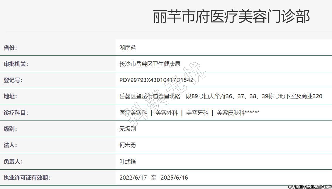 長沙麗芊市府醫(yī)療美容2022年01月04日成立,地址:岳麓區(qū)望岳街道金星北路二段89號恒大華府36、37、38、39棟號地下室及商業(yè)320,診療科目:醫(yī)療美容科 | 美容外科 | 美容牙科 | 美容皮膚科******
